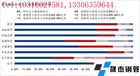分類型來看,今年生產製造業的員工放假停工占比依舊最低的,貿易流通、終端消費企業中所有員工都停工的情況占比分別到達77.39%、70.77%,居行業第一、第二,而工程建築類企業所有員工都放假停工的比例則降低至53.71%。