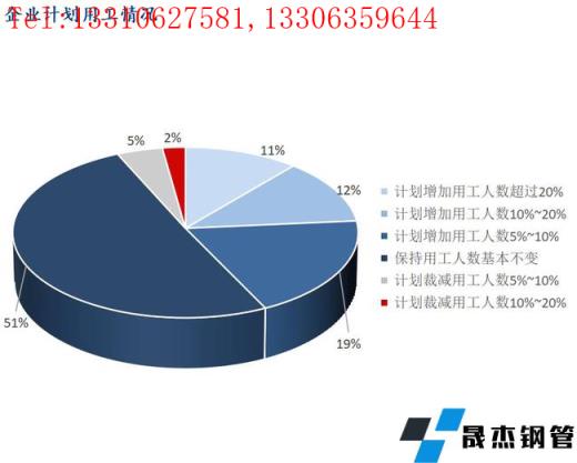 12、樣本企業計劃用工情況:計劃增加用工人數超過20%的企業占比11.24%;計劃增加用工人數10%~20%的企業占比12.36%;計劃增加用工人數5%~10%的企業占比19.10%;保持用工人數基本不變的企業占比50.56%;計劃裁減用工人數5%~10%的企業占比4.49%;計劃裁減用工人數10%~20%的企業占比2.25%。