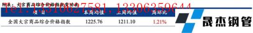全國大宗商品綜合價格指數均值為1225.76,環比上升,增幅1.21%(前值4.28%);同比上升,增幅20.14%(前值19.01%)。