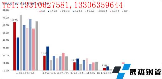 根據對出口企業的主要產品類型調研,46.65%的出口產品為大宗商品及工業原材料等初級產品,28.58%的產品是用於生產加工的中間產品,16.41%的產品是機器設備等資本品及其零部件。同時,出口產品相對穩定,其中增長10%~20%比例為15.01%,增長10%以內的比例為17.98%,約45.69%的出口企業與去年基本持平。