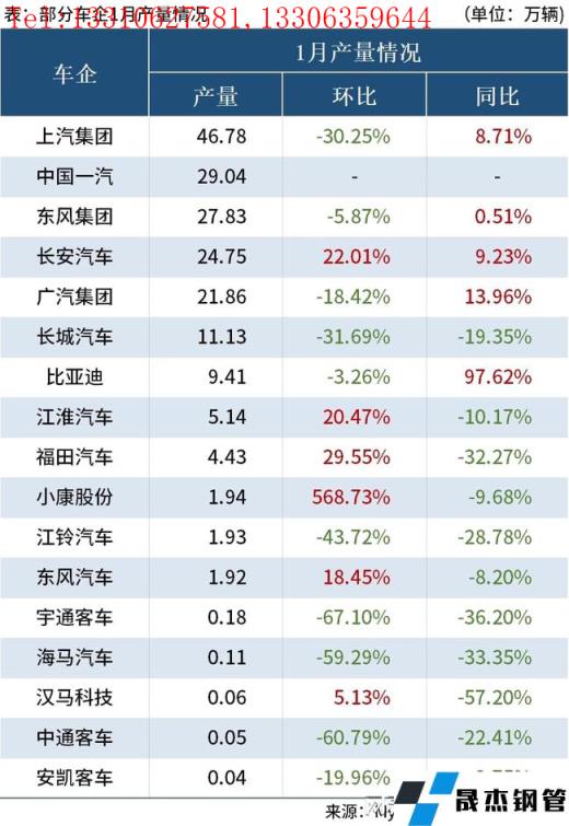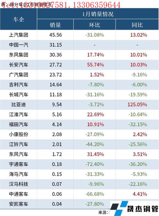免責聲明:本網站(山東聊城宅男666网站無縫鋼管廠www.fengyun0769.com)刊載的“1月我國汽車產銷降幅明顯,多數車企呈現雙位數下跌”等均源於網絡,版權歸原作者所有,且僅代表原作者觀點,本文所載信息僅供參考。轉載僅為學習與交流之目的,如無意中侵犯您的合法權益,請及時聯係刪除。本網站刊登此篇文章並不意味著本站讚同其觀點或證實其內容的真實性,宅男666网站不對其科學性、嚴肅性等作任何形式的保證。如果侵犯了您的版權,請盡快聯係宅男666网站予以撤銷,謝謝合作!