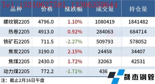 免責聲明:本網站(山東聊城宅男666网站無縫鋼管廠www.fengyun0769.com)刊載的“2022年02月16日午報:鋼價局部反彈,鋼材_無縫鋼管和焦炭期貨上漲”等均源於網絡,版權歸原作者所有,且僅代表原作者觀點,本文所載信息僅供參考。轉載僅為學習與交流之目的,如無意中侵犯您的合法權益,請及時聯係刪除。本網站刊登此篇文章並不意味著本站讚同其觀點或證實其內容的真實性,宅男666网站不對其科學性、嚴肅性等作任何形式的保證。如果侵犯了您的版權,請盡快聯係宅男666网站予以撤銷,謝謝合作!