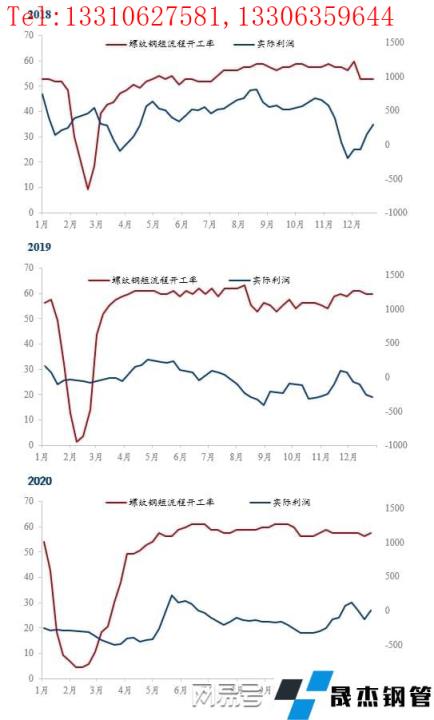 在開工率達到相對高位的情況下,電爐鋼的實際利潤並不會推動其上升,實際利潤對於開工率的向下拉動作用反而更為明顯,據2018年到2020年的開工率數據推算,當實際利潤下降幅度在100元/噸以上時,開工率的降幅基本都在5%左右。2020年5~6月份的無縫宅男在线小视频鋼管廠家電爐生產情況調查統計的文章中同樣可以看出,當期宅男在线小视频無縫鋼管成本上移,部分電爐廠已現虧損的情況下,主動檢修減產的情況是有所展現的。2018年和2019年的諸多文章同樣也可以印證。
