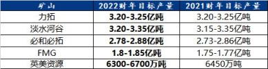 ◎ 澳洲巴西19港發運量顯示,2021年澳巴鐵礦發運總量12.77億噸,環比增加1701萬噸,增量主要來自於巴西。根據各大礦山2022財年生產計劃情況來看,力拓和淡水河穀目標產量與去年基本持平,必和必拓和FMG均存在一定增量,並且高礦價下,其它礦山例如英美等也將有一定增產的潛力,預計2022年全球鐵礦石產量同比將小幅增加。