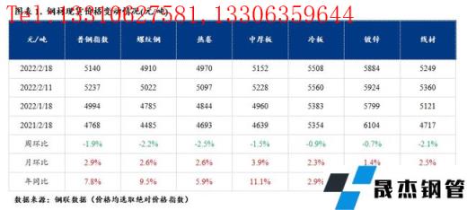 本周普鋼價格指數小幅下跌。截至2月18日,普鋼價格指數報5140點,環比跌1.9%;螺紋鋼報4910元/噸,環比上周跌2.2%元/噸。本周宅男在线小视频無縫鋼管價格結束上漲出現回落,原因在於驅動價格上漲的邏輯出現變化。