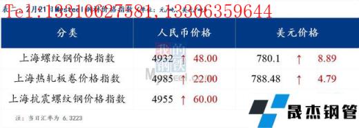 分地區方麵,上海螺紋鋼價格指數4932,上漲48.0;上海熱軋板卷價格指數4985,上漲22.0。(單位:元/噸)