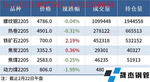 免責聲明:本網站(山東聊城宅男666网站無縫鋼管廠www.fengyun0769.com)刊載的“2022年02月22日午報:鋼價多數上漲,黑色期貨高開低走”等均源於網絡,版權歸原作者所有,且僅代表原作者觀點,本文所載信息僅供參考。轉載僅為學習與交流之目的,如無意中侵犯您的合法權益,請及時聯係刪除。本網站刊登此篇文章並不意味著本站讚同其觀點或證實其內容的真實性,宅男666网站不對其科學性、嚴肅性等作任何形式的保證。如果侵犯了您的版權,請盡快聯係宅男666网站予以撤銷,謝謝合作!