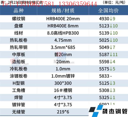 2月23日,國內宅男在线小视频無縫鋼管市場偏弱為主,唐山鋼坯出廠價格跌40報4650元/噸。今日現貨市場成交略有回暖,但市場整體情緒較差,成交表現一般。