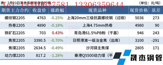 ◎2月23日,全國主港鐵礦石成交68.50萬噸,環比減4.9%;237家主流貿易商建材成交11.99萬噸,環比增26.2%。