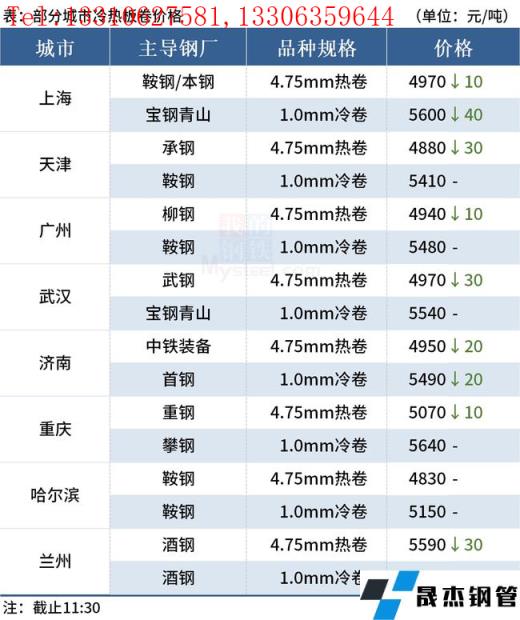 ◎樂從:24日早盤熱卷市場價格下跌10,4.75以上普柳燕4940-4950,2.75普5010-5160錳5120-5140。(單位:元/噸)