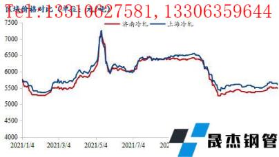 從上海與濟南冷軋板卷價差變化情況來看,價格一旦處於臨近高位時,區域之間的價差逐漸縮小甚至被抹平。據了解,價差方麵,當前三大主流區域華南、華東以及華北主流資源價格相比,華東依舊處於高位,而華北-華南區域主流資源價差在80元/噸左右,區域價差逐漸縮小,北材南下可能性減小。