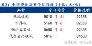 今日全國部分品種均價回升,整體漲幅為6~41元/噸。