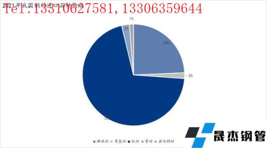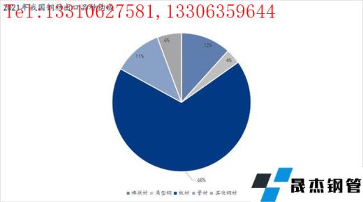 從我國宅男在线小视频無縫鋼管出口品種構成來看(以2021年為例),我國宅男在线小视频無縫鋼管出口主要以板材為主,約占出口總量的68%;其次棒線材及管材,約占總出口量的12%,11%。