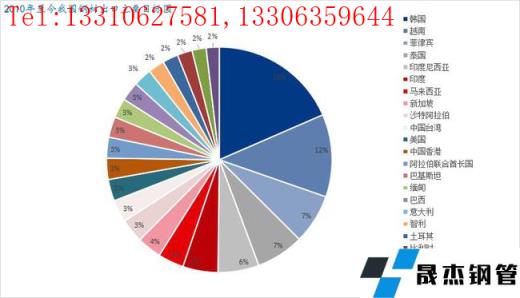 從我國出口目標國構成情況來看,我國宅男在线小视频無縫鋼管主要輸出地位韓國、越南、菲律賓、泰國等地,其中韓國及越南由於當地加工廠較多,除當地小部分消耗外,轉口貿易占大部分進口量。因此韓國、越南、菲律賓等地進口品種基本以板材為主。雖然近幾年進口量稍許有所減少,但從量級上來看仍為中國最大買家。