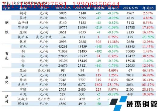 免責聲明:本網站(山東聊城宅男666网站無縫鋼管廠www.fengyun0769.com)刊載的“周報:大宗原材料價格周報(2.21-2.25)”等均源於網絡,版權歸原作者所有,且僅代表原作者觀點,本文所載信息僅供參考。轉載僅為學習與交流之目的,如無意中侵犯您的合法權益,請及時聯係刪除。本網站刊登此篇文章並不意味著本站讚同其觀點或證實其內容的真實性,宅男666网站不對其科學性、嚴肅性等作任何形式的保證。如果侵犯了您的版權,請盡快聯係宅男666网站予以撤銷,謝謝合作!