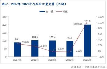 中國汽車工業協會數據顯示,按照整車企業出口統計口徑,2021年,汽車出口201.5萬輛,同比增長1倍,占汽車銷售總量的比重為7.7%,比上年提升3.7個百分點。隨著海外汽車市場複蘇,以及海外汽車市場對於我國汽車的品質和品牌得到認可。可以看出2022年海外汽車市場仍然是重要的銷量增長點。