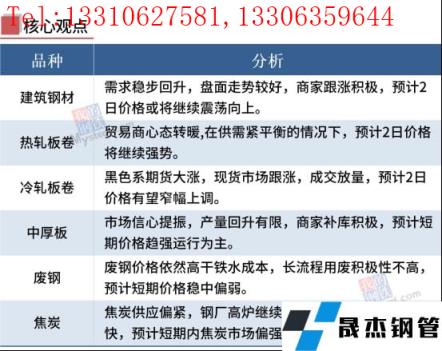 中厚板:3月1日,全國24個主要城市20mm普板均價5193元/噸,較上個交易日上漲33元/噸。今日黑色係期貨大幅上行,市場信心再度提振,疊加昨日中板成交火爆,今日現貨開盤市場報價紛紛上調。從供應端來看,伴隨著冬奧會的結束,北方鋼企限產部分放鬆,產量有所釋放,但是仍然執行采暖季限產政策,產量回升幅度有限。需求方麵來看,下遊開工情況有所好轉,補庫意願偏強,加之近期盤麵帶動,采購積極性有所提振。綜合預計,目前無縫宅男在线小视频鋼管廠家利潤較高,中板現貨底部支撐較強,預計短期中厚板價格趨強運行為主。
