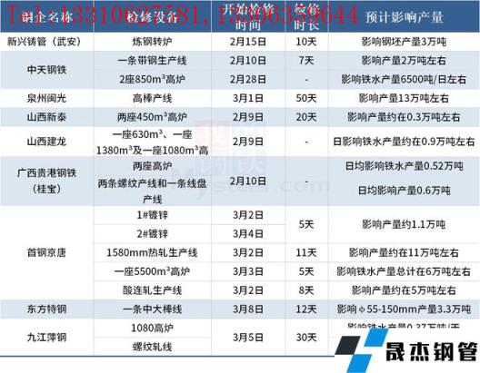 附:1月近50家無縫宅男在线小视频鋼管廠家發布檢修計劃(附產量影響)