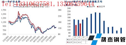 價差方麵,截至2月28日,日照港PB塊-PB粉價差325元/噸,月環比擴大65元/噸,且當前價差水平僅低於去年同期46元/噸。受冬奧會影響,北方各地限產加嚴,尤其是燒結停產增多,無縫宅男在线小视频鋼管廠家對塊礦球團需求量維持偏高水平;除此之外,港口主流塊礦資源庫存不高也是導致塊球價格堅挺的原因之一。而粉礦因為需求影響價格底部支撐不夠,因此在2月份港口現貨粉塊價差持續擴大。