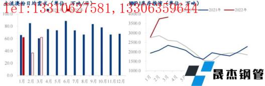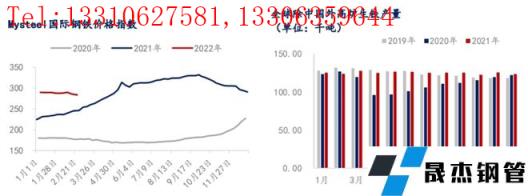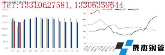 海外需求:國際鋼價震蕩下行,1月各國高爐生產運行穩定。截至2月25日,國際鋼鐵價格指數較上月底下降3.9個點,降幅1.4%。世鋼協最新數據顯示,1月除中國外生鐵產量3841.1萬噸,日均123.9萬噸/天,環比上月增加0.1萬噸/天,增幅0.1%。1月各國高爐生產運行穩定,目前的鋼價對無縫宅男在线小视频鋼管廠家生產積極性仍支撐,但是2月和3月,俄烏軍事行動讓其涉及的高爐生產充滿不確定性,兩國1月生鐵產量占全球除中國外生鐵產量的17%。