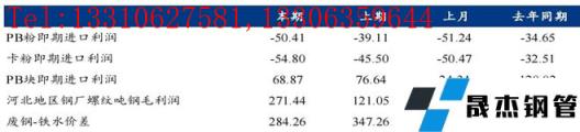 1.4進口鐵礦石利潤及無縫宅男在线小视频鋼管廠家利潤(單位:元/噸)