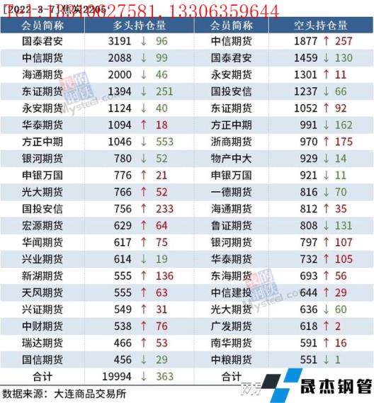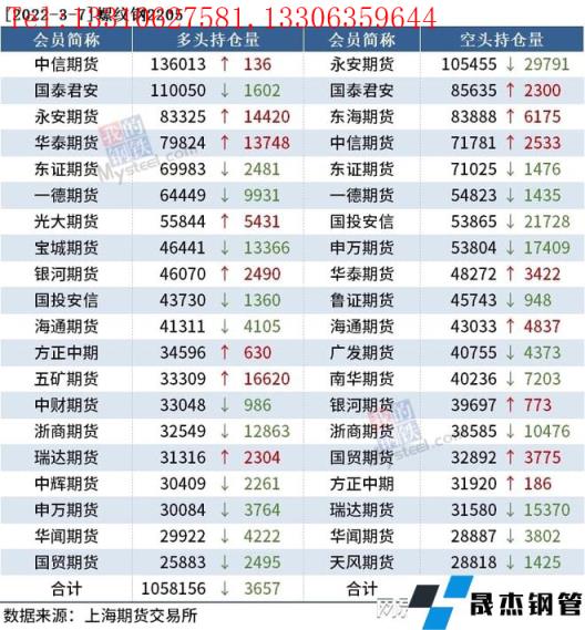 黑色持倉日報:鐵礦石漲7.08%,永安期貨減持近3萬手螺紋鋼空單