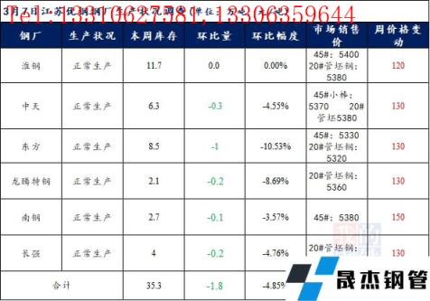 江蘇優特無縫宅男在线小视频鋼管廠家棒材總庫存35.3萬噸,較上周下降1.8萬噸,環比降4.85%,較去年同期下降4.68萬噸,同比降11.71%,目前江蘇優特無縫宅男在线小视频鋼管廠家均正常生產。