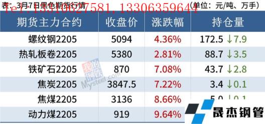 熱軋板卷:3月7日,全國24個主要城市4.75mm熱軋板卷均價5289元/噸,較上個交易日上漲111元/噸。由於對能源供應的擔憂,大宗商品類品種普遍抬升,雙焦、鐵礦石等原料端的上漲帶動了成品材的價格上漲,成本支撐強勁。同時,俄羅斯熱卷出口限製,供應的擔憂再一次推動了熱卷價格的上漲,明顯帶動國內價格的上漲。8日全國熱軋板卷價格或將小幅震蕩上行。