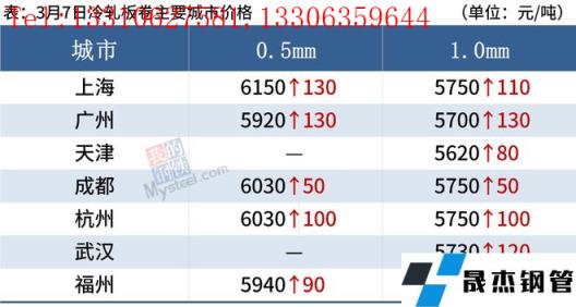 冷軋板卷:3月7日,全國24個主要城市1.0mm冷卷均價5711元/噸,較上個交易日上漲68元/噸。據局部區域貿易商反饋,今日冷軋價格漲幅明顯,市場交投情緒濃鬱,商戶多以出貨兌現為主,中小貿易商逢低補貨,下遊行業訂貨量有所增加;近日無縫宅男在线小视频鋼管廠家資源陸續倒庫,庫存壓力偏大,東南地區主流市場庫存偏高。綜合來看,預計8日全國冷軋價格仍有小幅補漲空間。