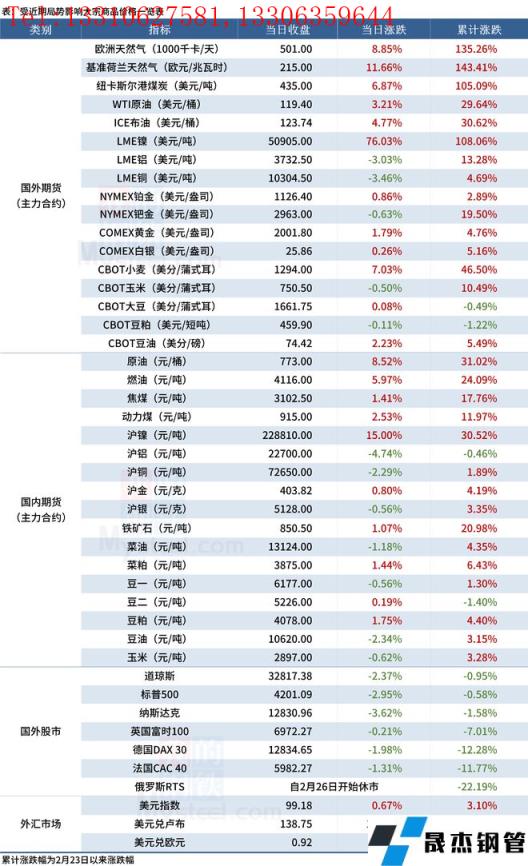 免責聲明:本網站(山東聊城宅男666网站無縫鋼管廠www.fengyun0769.com)刊載的“受近期局勢影響大宗商品價格一覽表(3月7日)”等均源於網絡,版權歸原作者所有,且僅代表原作者觀點,本文所載信息僅供參考。轉載僅為學習與交流之目的,如無意中侵犯您的合法權益,請及時聯係刪除。本網站刊登此篇文章並不意味著本站讚同其觀點或證實其內容的真實性,宅男666网站不對其科學性、嚴肅性等作任何形式的保證。如果侵犯了您的版權,請盡快聯係宅男666网站予以撤銷,謝謝合作!