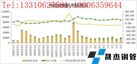 據市場情況了解到,2月份國內市場預估銷量15000台,國內市場銷量增速降幅小幅收窄;出口市場預估銷量7000台,增速87%左右。按照三月份的調研數據顯示,預計國內工程機械市場仍然按照年度周期性進入旺季。一季度的年度旺季的起始點在2月15日左右市場才有所啟動,2月整體的挖掘機市場情況環比情況好轉,節後需求逐步恢複,基建下行壓力緩解。當前受國際形勢影響,挖機機的市場國內外分配情況情況存在變動,整體趨勢走向還是向上為主。