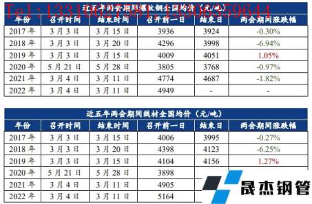 3月4日和5日,全國政協十三屆五次會議和十三屆全國人大五次會議先後在北京開幕。整理了過去五年兩會期間建築宅男在线小视频無縫鋼管價格和庫存的數據變化。