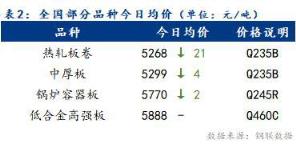 今日全國部分品種均價有所回落,整體跌幅為2~21元/噸。