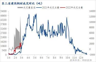 成交方麵,本周東三省日均出貨量1.2萬噸,而上周的日出貨量僅有0.9萬噸,上上周日出貨量也僅有0.49萬噸,成交量曲線圖也顯示本周以來數據往上拉升的較為明顯,且覆蓋在2021年同時期走勢圖的上方,上升的勢頭明顯,預計後期隨著需求的釋放,出貨將會持續好轉。