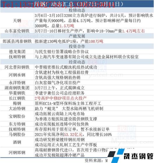 據不完全統計,本周(3月7日-3月11日)有2家無縫宅男在线小视频鋼管廠家發布檢修動態,具體如下: