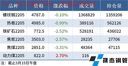 2022年03月15日午報:鋼價普遍下跌,鐵礦石和焦炭期貨跌逾2%
