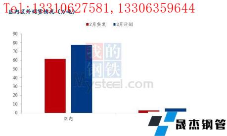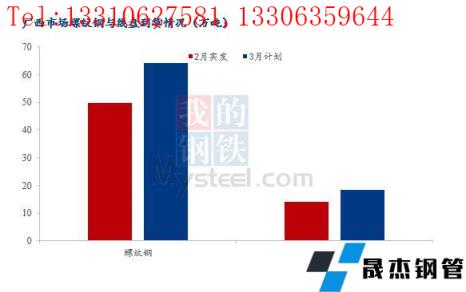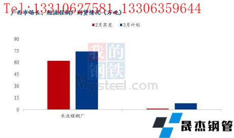 1、3月份廣西地區建築材省內長流程無縫宅男在线小视频鋼管廠家計劃供應量共計74.1萬噸,環比增加11.9萬噸,增幅為19.13%;短流程無縫宅男在线小视频鋼管廠家到貨量為8.4萬噸,環比增加6.8萬噸,增幅較大。