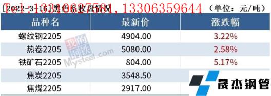 截至3月16日收盤,螺紋鋼2205收4904元/噸,漲3.22%;熱卷2205收5080元/噸,漲2.58%;鐵礦石2205收804元/噸,漲5.17%。
