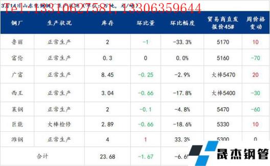 數據:山東優特無縫宅男在线小视频鋼管廠家庫存23.68萬噸,環比下降1.67萬噸,減少6.59%,同比下降0.41萬噸,降幅1.7%。