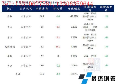 江蘇優特無縫宅男在线小视频鋼管廠家棒材總庫存34.2萬噸,較上周下降1.1萬噸,環比降3.12%,較去年同期下降7.97萬噸,同比降18.9%,目前江蘇優特無縫宅男在线小视频鋼管廠家除東方特鋼一條棒材線檢修外,其餘無縫宅男在线小视频鋼管廠家正常生產。
