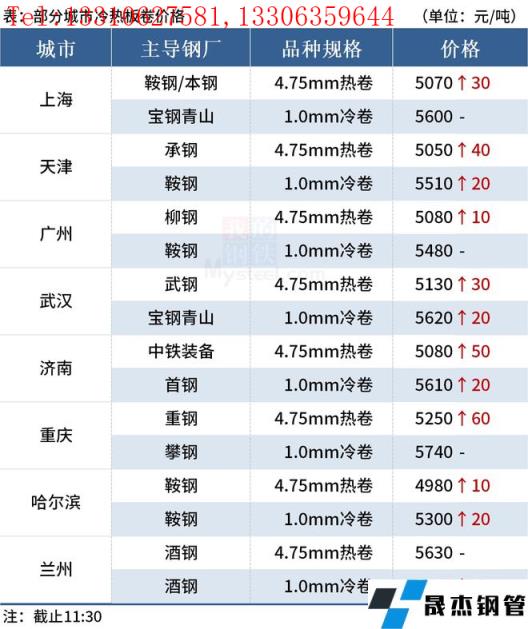 ◎上海:17日早盤熱卷市場價格漲30,現主流報價1500普5050-5070元/噸,1800報5160-5170元/噸;1500錳5210元/噸,1800報5310元/噸左右,2.75Q235B報5170-5190元/噸,2.75SPHC報5230元/噸左右。(單位:元/噸)