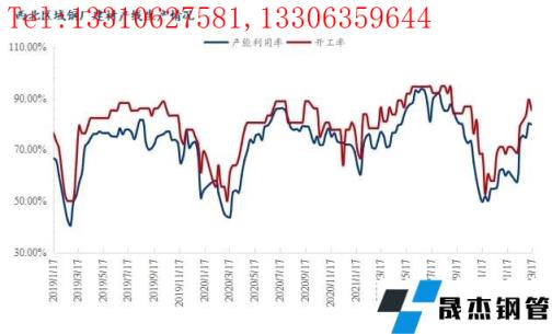 本周西北區域15家建築宅男在线小视频無縫鋼管生產廠家48條產線實際開工41條,軋線開工率為85.4%,周環比下降4%;建材產線實際產量約66萬噸,周環比減少約0.5萬噸,產能利用率為79.8%,周環比下降0.3%,減量部分主要在陝西LG無縫宅男在线小视频鋼管廠家高爐停產兩條軋線同步檢修。