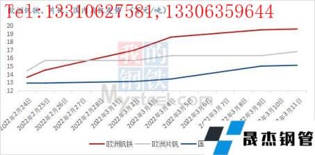 2月24日EW矛盾突發,原本穩定的供應鏈受到影響,擔憂情緒四處蔓延,歐洲釩市首當其衝產品價格快速上漲。國內市場高度關注國際價格走勢,利好消息不斷,市場樂觀情緒高漲,又是恰逢國內三月鋼招,雙重利好相互疊加不斷推動國內釩市上漲,致使國內原料散貨成交價格高達現金15.1-15.2萬元/噸,創近年來新高。