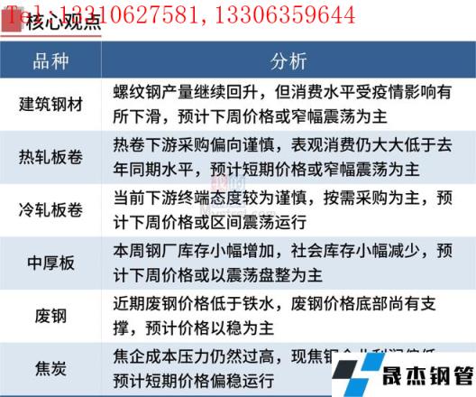 本周國內多地無縫宅男在线小视频鋼管廠家運輸受阻,鋼市成交量明顯下滑,短期廠內庫存或進一步累積,抑製鋼價反彈高度。不過,電爐廠已陷入虧損,加之預期穩增長政策將出,鋼價底部支撐力度也強。當前市場複雜多變,國內疫情形勢,穩增長政策落實情況以及國際局勢變化仍是主要關注點。