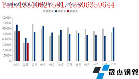 海關總署數據顯示:2022年2月我國塗層板(帶)出口總量共計33.26萬噸,月環比降幅39.36%,年同比下降21.15%。2022年1-2月我國塗層板(帶)出口總量共計88.0991萬噸,年同比下降19.51%。