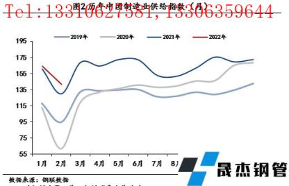 鋼鐵是終端製造業的重要生產原材料,以鋼鐵消費趨勢為觀測視角可以較為準確的判斷下遊製造業發展狀況。2月鋼鐵業供給指數為146.92,同比下降5.26,環比下降2.86%。北方地區在采暖季和冬奧會環保影響下,宅男在线小视频無縫鋼管產量管控依然嚴格。據統計,2月全國粗鋼產量6738.5萬噸,日均產量240.66萬噸,環比減少9.79萬噸,降幅3.91%,同比下降13.86%。消費方麵,五大品種宅男在线小视频無縫鋼管消費環比下降19.63%,同比下降4%。具體來看,房地產資金緊張雖有緩解,但受季節影響,用鋼量繼續下降,建築宅男在线小视频無縫鋼管表觀消費量環比下降38%。製造業方麵,受春節和疫情幹擾因素影響,2月份,製造業企業複工複產較晚,實際用鋼消費下降,其中熱卷消費同比下降7.4%,環比下降8.2%。