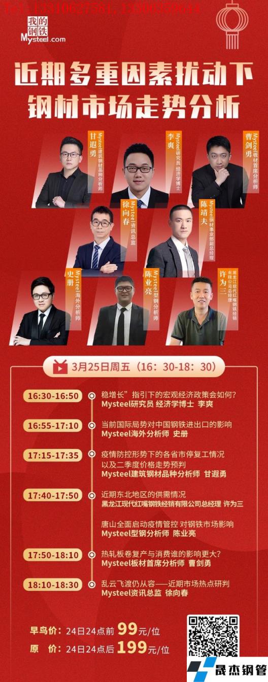 3月25日周五下午16:30,黑龍江現代紅嘴鋼鐵經銷有限公司總經理許為三、資訊總監徐向春、經濟學博士研究員李爽、板材首席分析師曹劍勇、建築宅男在线小视频無縫鋼管品種分析師甘遐勇、型鋼分析師陳業亮及國際鋼鐵市場分析師史冊,將做客直播間,聊一聊近期多重因素擾動下對鋼鐵市場的影響有哪些?