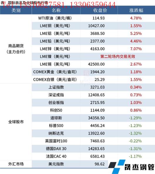 免責聲明:本網站(山東聊城宅男666网站無縫鋼管廠www.fengyun0769.com)刊載的“2022年03月24日早讀:黑色期貨夜盤全線上漲,國際原油金屬期價大漲”等均源於網絡,版權歸原作者所有,且僅代表原作者觀點,本文所載信息僅供參考。轉載僅為學習與交流之目的,如無意中侵犯您的合法權益,請及時聯係刪除。本網站刊登此篇文章並不意味著本站讚同其觀點或證實其內容的真實性,宅男666网站不對其科學性、嚴肅性等作任何形式的保證。如果侵犯了您的版權,請盡快聯係宅男666网站予以撤銷,謝謝合作!