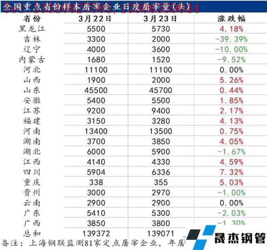 截至3月23號,國內重點屠宰企業開工率為26.52%,環比昨日小幅下降,未來幾日的封禁對於屠宰企業開工有著明顯的利空,預計未來幾日,部分北方地區屠企開工率或繼續下降,那就意味著他們的利潤將被繼續擠壓。
