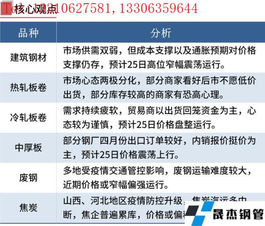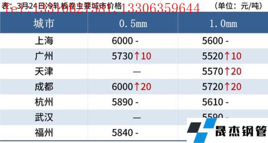 冷軋板卷:3月24日,全國24個主要城市1.0mm冷卷均價5656元/噸,較上個交易日上漲10元/噸。今日早間市場報價紛紛上漲20-30元/噸,詢單人數明顯增加,但由於疫情影響,需求持續疲軟,多數市場存在暗降優惠現象,貿易商以出貨回籠資金為主,心態較為謹慎。庫存方麵,據不完全統計,現冷軋無縫宅男在线小视频鋼管廠家庫存38.68萬噸,周環比增加4.74萬噸,社會庫存140.37萬噸,周環比減少2.75萬噸,周消費量81.67萬噸,環比減少1.45萬噸。綜合來看,故預計25日國內冷軋板卷價格或將盤整運行。